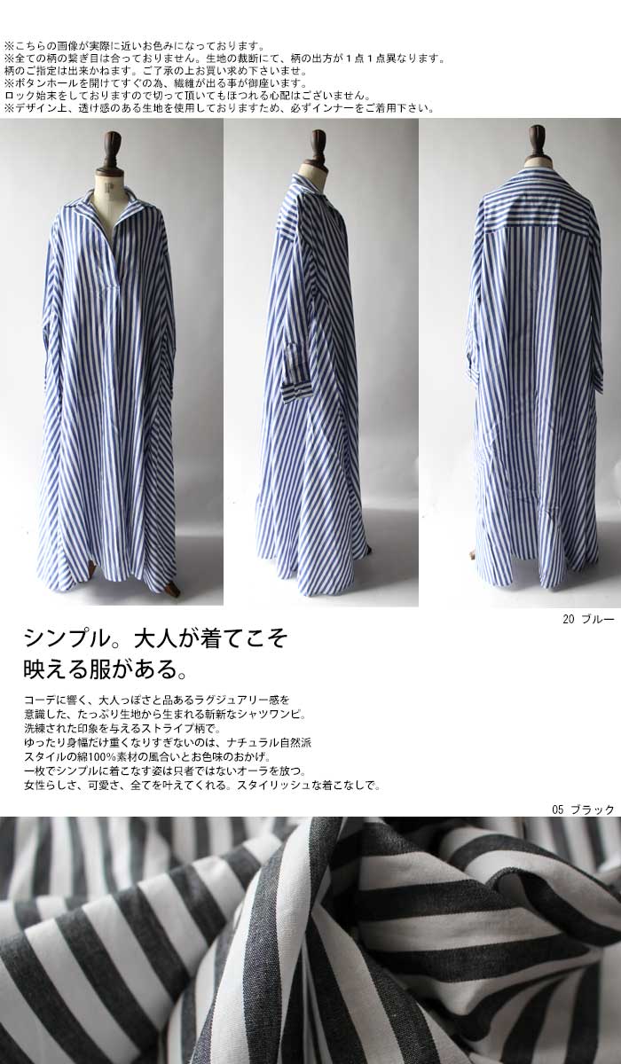 ボリューム感が可愛いプルオーバーロングシャツ、ずっと愛されてきた大人女子必須のストライプ柄を使用して。